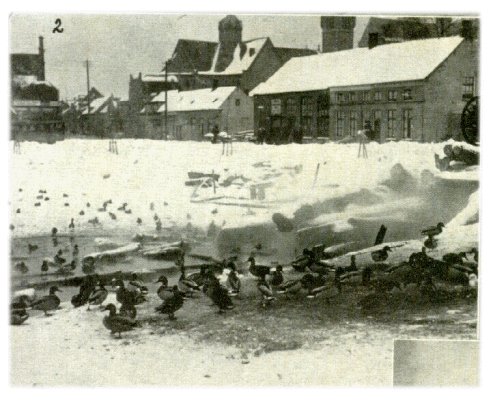 Goes, 1929, Het ontdooide plekje aan de Oostvest te Goes, waar de vaste bewoners van het water zich "senang" gevoelen.