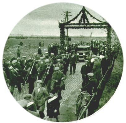 Voorafgegaan door de muziek gaat de stoet het dorp binnen