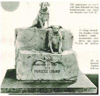 Te Parijs bevindt zich een honden- en kattenkerkhof, waar ook monumenten voor de dieren zijn opgericht. Een der graftomben