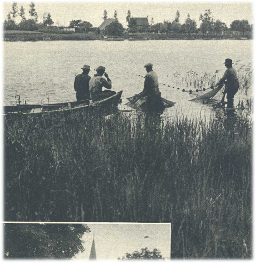 Vogelwaarde, de nieuwe Zeeuwsch-Vlaamsche gemeente. Stukje voor stukje wordt de Vogel afgevischt: met de boot wordt 't net naar het midden van 't water gebracht om dan naar den oever getrokken en samengesnoerd te worden in de hoop op een gelukkige vangst