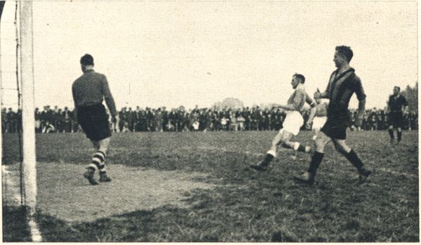 Een mooi schot van Dirkse zien de Terneuzen-spelers in hun doel verdwijnen. 't Was 7-0