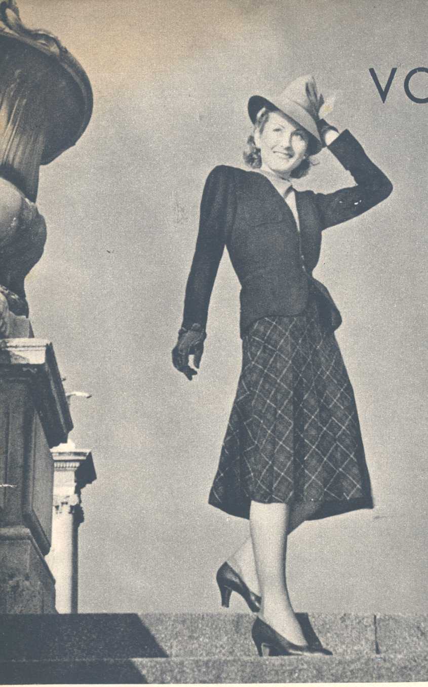 Voorjaarswandeling. Een effen pakje en dan als reserve zo'n geruit rokje erbij maakt dat we ook het manteltje tot den laatsten draad kunnen opdragen