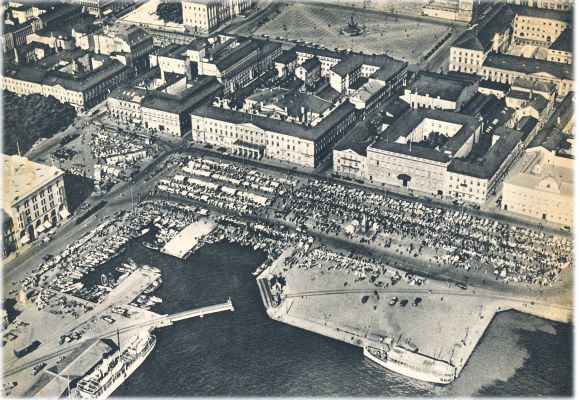 Helsinki, 1939, Helsinki, de hoofdstad van Finland. Een fraaie luchtfoto van de haven van Helsinki, genomen van een hoogte van 350 meter. Wel duidelijk komen op deze foto de moderne stadsaanleg en de klassieke bouwvorm tot uiting